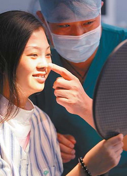 黑暗、聚光燈、麻醉劑、手術刀……32分鐘后,當林小姐忐忑不安地拿起鏡子,鏡中那個看起來陌生而美麗的自己讓她驚喜不已,挺直而秀氣的鼻梁襯托的本來就嬌好的五官愈發(fā)靚麗,原來那個因為鼻梁太低而連眼鏡都掛不住的“塌鼻梁”經(jīng)過半個多小時的手術后不復存在。雖然因為做這個隆鼻手術而放棄了黃金周出游計劃,但她