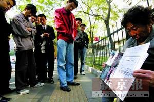 王某的告示和展示的材料引得眾多路人圍觀。本報(bào)記者韓萌