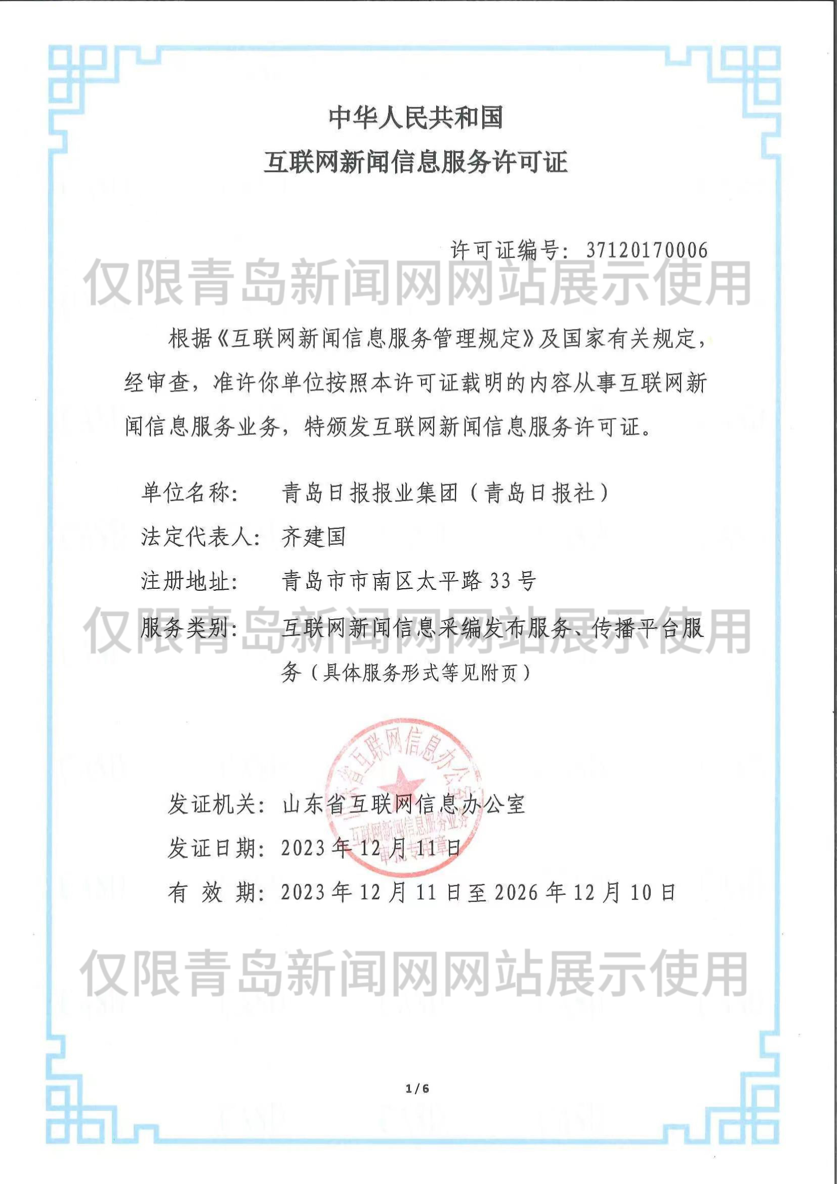 為確保在國(guó)際互聯(lián)網(wǎng)上所發(fā)布青島新聞信息的正確政治方向,便于網(wǎng)上新聞發(fā)布的把關(guān),青島新聞網(wǎng)絡(luò)傳播有限公司是青島日?qǐng)?bào)報(bào)業(yè)集團(tuán)各報(bào)(刊)及其網(wǎng)絡(luò)版在國(guó)際互聯(lián)網(wǎng)上進(jìn)行信息交換、交流的代表和制作、發(fā)布人,全權(quán)負(fù)責(zé)青島日?qǐng)?bào)報(bào)業(yè)集團(tuán)各報(bào)(刊)及其網(wǎng)絡(luò)版的對(duì)外信息交換、交流業(yè)務(wù)。