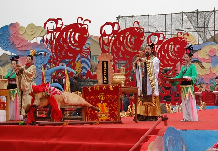 ????田橫祭海節(jié)是中國最具影響的海洋節(jié)之一,源于當?shù)貍鞒形灏儆嗄甑募篮C袼?。每年谷雨前后,田橫漁民在修船、添置漁具等生產(chǎn)準備工作就緒后,把漁網(wǎng)抬上船,便開始祭海。
