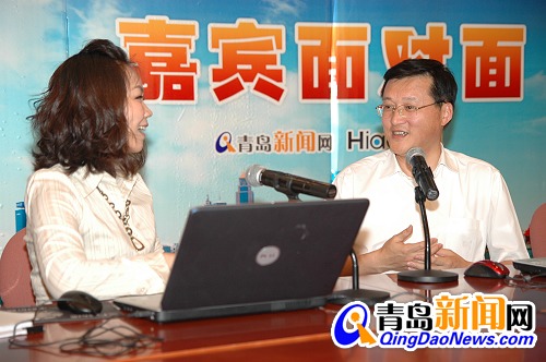 日照市委書記楊軍(右)做客青島新聞網(wǎng)暢談“同城時代”,左為本網(wǎng)主持人曉佳。