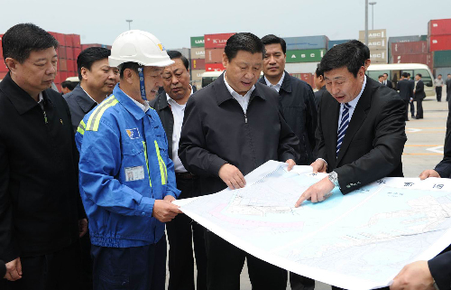 ????2008年5月8日,中共中央政治局常委、書記處書記、國家副主席習近平來港視察,并親切看望振超團隊。省委書記姜異康,省委副書記、省長姜大明,省委常委、市委書記閻啟俊,市委副書記、市長夏耕等省市領(lǐng)導陪同。