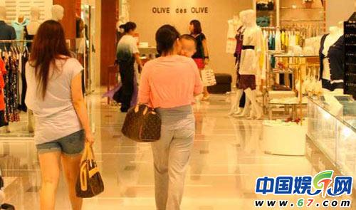 俞晴抱孩子逛街
