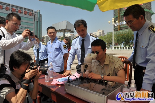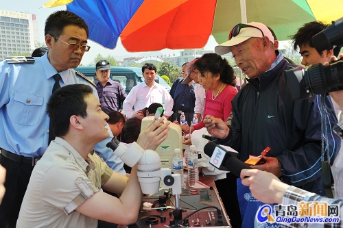 檢測(cè)現(xiàn)場(chǎng)變成“鑒寶大會(huì)” 青島新聞網(wǎng)5月20日訊 昨天的李村維客廣場(chǎng),儼然變成了一場(chǎng)“鑒寶大會(huì)”。為迎接第11個(gè)世界計(jì)量日,昨天上午,市質(zhì)監(jiān)局在這里開(kāi)展現(xiàn)場(chǎng)咨詢活動(dòng),免費(fèi)為市民檢測(cè)珠寶首飾、眼鏡質(zhì)量、血壓計(jì)等。周邊市民得知可以免費(fèi)檢測(cè)珠寶,紛紛拿出“壓箱底”的家伙,請(qǐng)專家“把把關(guān)”。一上午時(shí)間,共檢測(cè)珠寶飾品80余件,其中“冒牌貨”超過(guò)4成。 買(mǎi)珠寶記得索要資質(zhì)證書(shū)