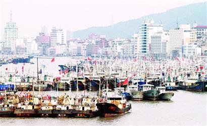 ????5月30日,大批漁船??吭谡憬凵缴蚣议T漁港,準(zhǔn)備休漁。
