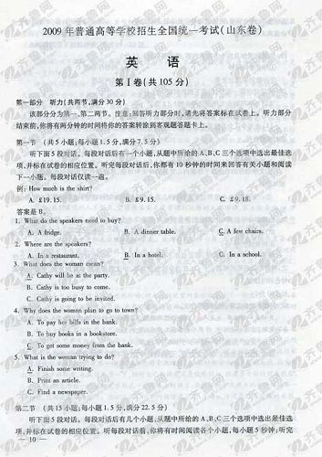 2009全國高考山東卷文科數(shù)學(xué)試題及答案