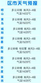 ????據(jù)青島市氣象臺首席氣象預(yù)報員介紹,由于海洋水溫只有14-15℃,南風(fēng)一刮,半島氣溫就很難升高,所以最高氣溫較魯中以西來的低一些。目前,在渤海灣的西側(cè)有對流云團,這是一個高空低渦造成的。受其影響島城市區(qū)的氣溫一直保持在15-20℃,未來三天也沒有什么太大變化。少了海洋氣候的調(diào)節(jié),郊區(qū)的氣溫開始快速升高,最高氣溫從26℃將一直上升到30℃左右,郊區(qū)的氣溫明顯高于市區(qū),且多是大晴天,市民可以放心安排自己的行程。