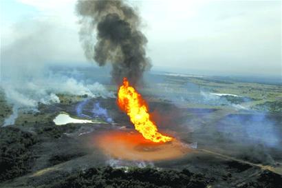 ????多名目擊者說,火焰高近百米,30多公里以外都能看到。