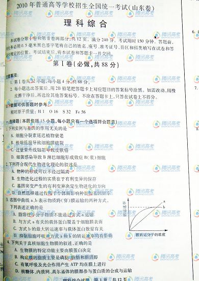 2010年高校招生全國統(tǒng)一考試?yán)砭C(山東卷)