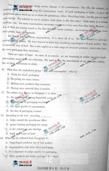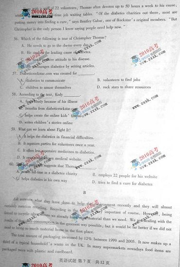 2010年高校招生全國(guó)統(tǒng)一考試英語(山東卷)