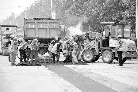 5日,309國道濰坊段正在進行維修。 本報記者 楊傳忠 攝
