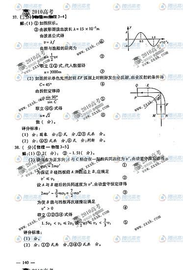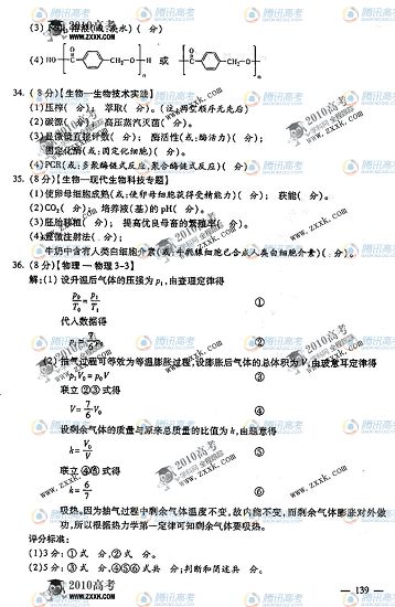 2010年高考理綜試題答案公布(山東卷)