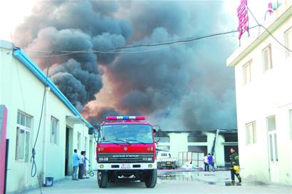 ????記者趕到現(xiàn)場,在大門口就能聞到一股塑料燒焦的味道,從廠門口往里望,可以看到一排起火的彩鋼瓦廠房,靠近大門西排的彩鋼瓦房屋頂被燒穿。消防隊員對失火廠房噴水滅火,并阻止火勢的進(jìn)一步蔓延。一名在該廠打工的中年男子告訴記者,起火的是這家塑料廠的生產(chǎn)車間?!捌鸹鸬臅r候,車間里沒人,也沒人受傷。”這名工人說。記者在采訪過程中,大火借著風(fēng)勢越燒越厲害,很快將近千米的廠房全部引燃。晚7時許,在5輛消防車的撲救下,廠房的大火才被控制住。目前失火原因和損失情況正在進(jìn)一步調(diào)查中。 (牟成梓 孫強 攝影報道)