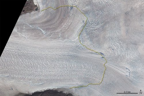 中廣網(wǎng)北京7月16日消息 據(jù)中國之聲《新聞縱橫》8時30分報道,美國的冰川研究人員利用衛(wèi)星持續(xù)對格陵蘭島最活躍的幾座冰川進行監(jiān)測,他們發(fā)現(xiàn)有著格陵蘭冰川之母之稱的Jakonbshavn冰川的北翼一夜之間就消退了1.61公里。美國宇航局冰凍圈項目的科學(xué)家瓦格納說,在幾個晚上之前,這座冰川上就裂了一個大縫,兩個晚上之后,冰塊就從冰川上脫落了,隨著水飄走,脫落部分的面積大約是曼哈頓島1/8這么大,創(chuàng)下了冰川縮小最快速度的新記錄。但是這還沒完,7月12日研究人員又在這座冰川的南翼發(fā)現(xiàn)了一個新裂縫,這個裂縫更大,是否會產(chǎn)生一個新浮冰目前還不得而知。