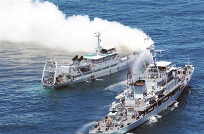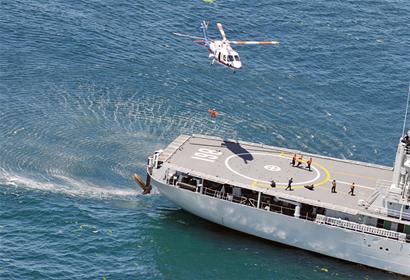 ????“一艘運(yùn)送重要物資的貨輪從青島港南下至朝連島附近海域,與1艘北上客輪相撞,船體破損、起大火,多名人員落水、受傷,部分裝備物資沉入海底。兩船發(fā)出求救信號(hào)!”前天早上7時(shí)55分,山東省海上搜救中心接到報(bào)警后,立即將情況通報(bào)北海艦隊(duì),開展緊急搜救。8時(shí)整,隨著演練總指揮、北海艦隊(duì)副司令杜希平一聲令下,一場(chǎng)由北海艦隊(duì)主辦,以某作戰(zhàn)支援艦支隊(duì)海上應(yīng)急搜救隊(duì)為主體兵力,北海艦隊(duì)航空兵、青島保障基地、401醫(yī)院、山東海事局、交通部北海救助局、北海第一救助飛行隊(duì)等單位密切配合的“海上聯(lián)合搜救實(shí)兵演練”,在青島朝連島附近海域拉開帷幕。800多名軍地參演兵力快速集結(jié),船艇劈波斬浪,直升機(jī)緊急起飛,趕赴出事海域?qū)嵤┚仍?/p>