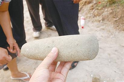 ?經(jīng)過兩天發(fā)掘出土大量北宋瓷器碎片、古磚和一把新石器時代的石斧