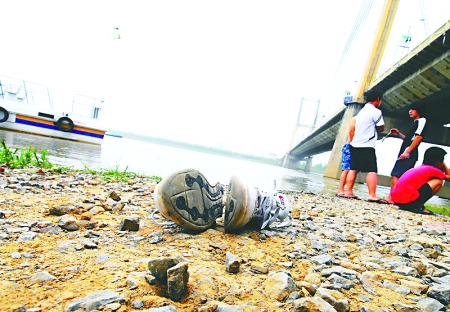 15日, 蚌埠市淮河公路大橋下,劉開瑾的鞋子還留在岸邊。