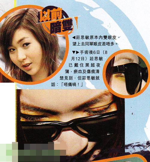 ????莊思敏由單變雙眼皮,胸部由原本31A升到31C。手術(shù)后9日(8月15日)莊思敏披露進(jìn)化過(guò)程,未經(jīng)按摩的完美C奶就未成型,但豐滿(mǎn)北半球同強(qiáng)勁的事業(yè)線(xiàn)呼之欲出。