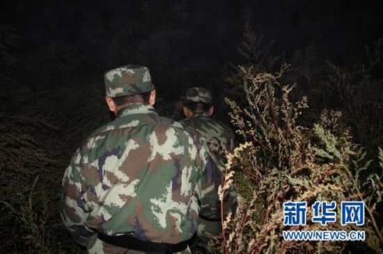 8月25日凌晨,伊春邊防支隊官兵在飛機(jī)失事現(xiàn)場林中展開拉網(wǎng)式搜救,尋找幸存者。新華社發(fā)(李廣福 攝)
