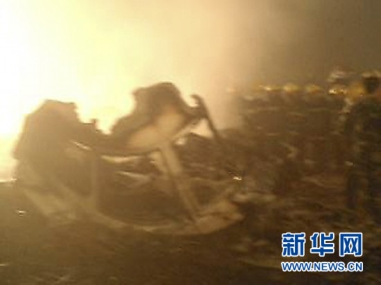 8月25日凌晨,救援人員在飛機(jī)殘骸邊展開救援工作(手機(jī)拍攝)。新華社發(fā)(李廣福 攝)