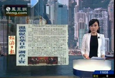 ????鳳凰衛(wèi)視8月30日《鳳凰早班車》節(jié)目播出“溫家寶會見岡田克也促在華日企調(diào)高工資”,以下為文字實錄:
