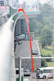 ????“這名中年男子是凌晨三四點鐘從橋上摔下來的,當(dāng)時停車場里有人看車,也聽到有重物落下的聲音,但因為從橋上摔下的男子正好掉落在大巴車和四五米高的墻壁縫隙中,值夜班的看車人根本就看不到。”看車人李師傅告訴記者,值夜班的看車人上午8時已經(jīng)下班回家休息,他來上班時聽周圍居民稱,早晨6時40分左右,大巴車司機趕到停車場提車,把車開出車位時從后視鏡里看到,一名滿臉鮮血的男子臉朝下趴在地上,頭上淌了一大攤鮮血,司機急忙停車撥打110報警,并聯(lián)系120急救人員趕來?!翱礃幼铀軅吭谶@已經(jīng)很長時間了,頭上流出來的血都已經(jīng)凝固了,120急救人員趕到現(xiàn)場為他做心電圖時,上面顯示已經(jīng)是一條直線。”目睹此事的另外一輛客車司機告訴記者。