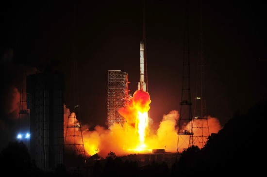搭載著“鑫諾六號(hào)”通信廣播衛(wèi)星的“長征三號(hào)乙”運(yùn)載火箭在西昌衛(wèi)星發(fā)射中心點(diǎn)火升空。