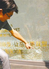 ????“這不可能是用石頭或別的什么硬東西砸碎的,多家店鋪出現(xiàn)的情況都幾乎一樣?!奔茨屡d路一家酒店的負(fù)責(zé)人告訴記者,他們酒店因?yàn)閮擅嫒峭该鞑A?,所以在選擇玻璃時(shí),特別注意用了較厚的玻璃,一般石頭很難砸碎,并且出現(xiàn)這樣的“彈孔”,怎么看都不像是用什么硬東西砸的。
