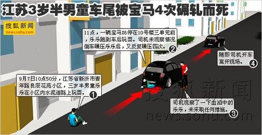 ????昨日晚7時許,新沂市委、市政府召開新聞發(fā)布會,公開向新聞媒體和廣大市民通報“9.7”案件偵查進展情況。通報稱,9月7日上午11時許,在新沂市良辰花苑小區(qū)院內(nèi),一輛牌號為蘇CLH×××的寶馬X6小型越野汽車將居住在該小區(qū)的一3歲半男童碾軋致死。
