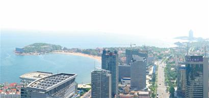 ????從51樓下電梯,步行兩層就到達(dá)了萬邦中心制高點(diǎn)——停機(jī)坪。停機(jī)坪目前還只是個(gè)大約百余平米的水泥臺。按常理,海拔平均每升高100米,溫度就會降低0.6攝氏度。但記者沒有“高處不勝寒”的感覺。由于天氣晴朗,加之地面水泥地反射,記者的臉上被曬出了汗,盡管風(fēng)比樓下大得多。萬邦中心工作人員李先生說,如果是霧天,感覺就會截然相反。 東西南北景色各異 站在停機(jī)坪往四周俯瞰,山、海、城美景盡收眼底。東面五四廣場、奧帆基地等經(jīng)典美景,視線最佳時(shí)能看到嶗山山頂;西面,青島灣、八大峽,視線最佳時(shí)能看到薛家島;往北瞧,德式建筑、新建小區(qū)爭奇斗艷;向南望,海上落日、點(diǎn)點(diǎn)船帆如詩如畫。視線所及,高高低低的樓房像售樓處擺出的火柴盒模型,“威武”的電視塔也成了小矮個(gè),海面上船舶駛過,留下一串串白色浪花。在這里,記者體驗(yàn)到的是“一覽眾山小”。
