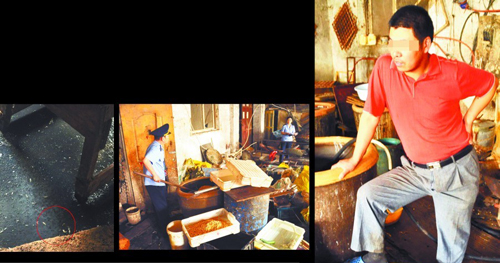 ????“如果親眼目睹這家黑豆腐坊生產(chǎn)出來(lái)的臟豆腐,就再也不想吃豆腐了!”近日,有讀者反映,在長(zhǎng)沙路和勁松三路交會(huì)處一廢棄廠房?jī)?nèi),隱藏著一個(gè)黑豆腐作坊。本報(bào)記者利用9月15日、16日兩天時(shí)間進(jìn)行了暗訪,這個(gè)黑作坊內(nèi)環(huán)境差得令人作嘔:加工間內(nèi)滿地臭水;生產(chǎn)豆腐的豆子和垃圾放一起;豆腐泡在污水里,用發(fā)霉的筐子盛放;蛆蟲(chóng)爬、蒼蠅飛……記者采訪了解到,這個(gè)作坊生產(chǎn)的黑豆腐都流向了附近的市場(chǎng)和小飯店。目前,合肥路工商所執(zhí)法人員已就此進(jìn)行了查處 。
