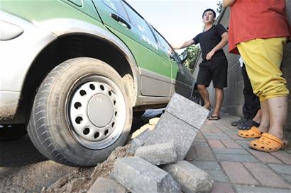 ????“事發(fā)時我正在路邊乘涼,看到這輛出租車從坡底往山上開,在距離我四五米遠的地方,司機換擋時突然加速朝我這邊沖來,我下意識地退到墻根下,車撞倒兩根石墩沖了過來,幸好第三根石墩將出租車擋住了?!被叵肫甬敃r的情景,洗車店老板李先生仍然心有余悸,他稱,當時人行道上還有兩名市民,多虧這根石墩救了他們?nèi)说拿?/p>