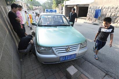 醉駕出租車沖上人行道 遇交警狂喝洗車水(圖)