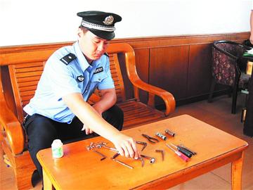 民警在清點(diǎn)作案工具。