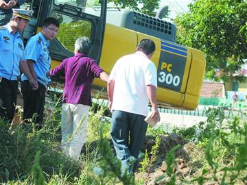 ????早報(bào)訊 昨天,中韓街道辦事處組織城管執(zhí)法部門對(duì)濱海大道兩側(cè)鐘家溝及朱家洼社區(qū)段七處影響市容、業(yè)主拒不自行拆除的違法建筑予以強(qiáng)拆。在現(xiàn)場(chǎng),一名中年男子拿著磚頭,阻止挖掘機(jī)工作。最后,在執(zhí)法人員和家屬的勸說下,男子才憤憤離開。