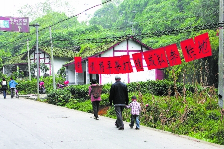 ????一個多月前,當(dāng)他看到要拍攝靜電影《私奔》,加上臨邛鎮(zhèn)推出文君酒,周子古鎮(zhèn)提出“司馬相如故里”一說,他覺得大家都在沾先人的光。他和20多位村民商量,我們何不也沾沾司馬相如老先生的光?把“私奔勝地”的名號搶到手。10月1日清晨,易先生用毛筆在紅紙上寫下:“建議將平樂打造成"私奔勝地"”的橫幅,并將橫幅掛在古鎮(zhèn)入口處。