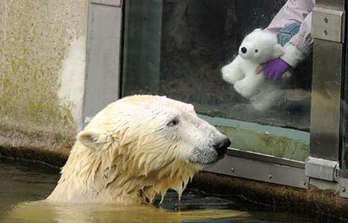 北極熊向玩具熊示愛