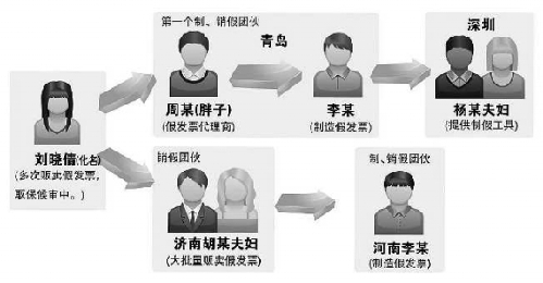 ????湖南的劉曉倩夫婦來到青島后,—直以販賣假發(fā)票為生。2009年,兩人在販賣假發(fā)票時(shí),被青島警方抓獲,由于兩人有—個(gè)4歲大的小女兒無(wú)人照顧,按照相關(guān)規(guī)定,劉曉倩因要照顧未成年子女,得以取保候?qū)?。劉曉倩還是無(wú)法舍棄她與丈夫的假發(fā)票“事業(yè)”。在丈夫被抓后不久,她就聯(lián)系到—名外號(hào)叫“胖子”的男子周某。