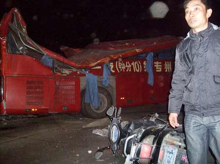 ????●昨晚6時(shí)45分左右,一艘來(lái)歷不明的大船撞倒大橋復(fù)線施工工地3號(hào)橋墩,50多米高的塔吊倒下,近55米長(zhǎng)的吊臂砸在旁邊的烏龍江大橋上,砸中一輛中巴車(chē),一輛出租車(chē),一輛電摩,18人受傷。