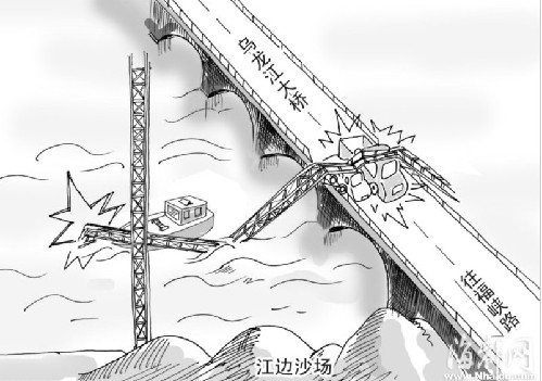 ????昨夜6時(shí)45分,工地上一位看守工地的工人說(shuō),聽(tīng)到“轟”的一聲巨響,他從工棚里跑出來(lái),吊臂已經(jīng)砸在了橋面上。