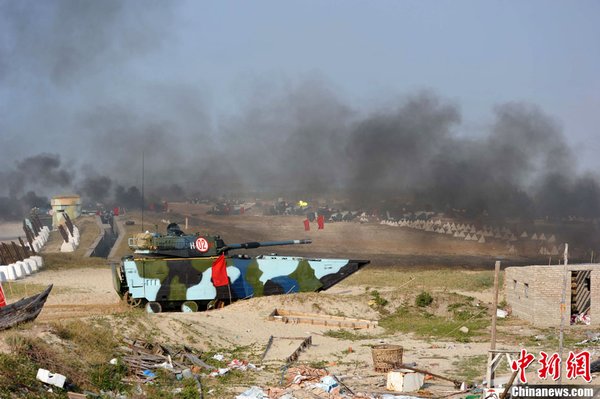 圖為“蛟龍—2010”主要攻擊隊(duì)、輔助攻擊隊(duì)突擊車(chē)抵灘。中新社發(fā) 劉逢安 攝