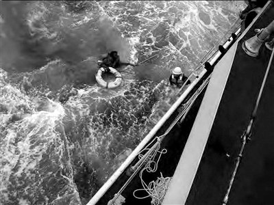 昨天,在日本南部西表島附近,日本海岸警衛(wèi)隊(duì)成員營(yíng)救幸存的中國(guó)船員。新華社/路透