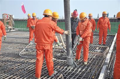 ????昨日上午10時30分,隨著最后一罐混凝土澆入紅島互通與連接線接口的D1箱梁內(nèi),青島海灣大橋紅島連接線最后一片箱梁澆筑成功,這標(biāo)志著青島海灣大橋紅島連接線主體工程順利完工,也為大橋年底主體完工目標(biāo)的實現(xiàn)奠定了良好的基礎(chǔ)。據(jù)悉,海灣大橋上的紅島互通立交憑借紅島連接線與海岸銜接,現(xiàn)在連接線主體完工,意味著海灣大橋紅島互通立交正式上岸。