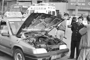 黃石大道離事故現(xiàn)場不遠(yuǎn)處,發(fā)生自燃的出租車。