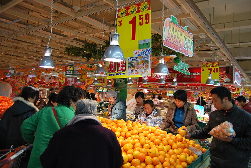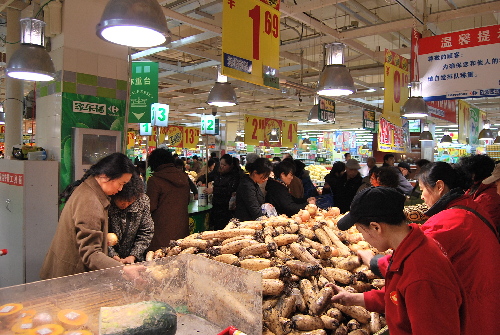 ????山東家樂(lè)福采購(gòu)中心生鮮采購(gòu)處處長(zhǎng)賈女士告訴記者,家樂(lè)福最近大大降低了蔬菜、水果、糧食等基礎(chǔ)食品類產(chǎn)品的進(jìn)場(chǎng)費(fèi),使得米、面、油、菜、蛋的整體價(jià)格下降了5%-10%。以大白菜為例,青島市的市場(chǎng)價(jià)格多在1元/斤,而家樂(lè)福的售價(jià)為0.71元/斤,比市場(chǎng)價(jià)低29%,白蘿卜0.58元/斤的超低價(jià)格,堪比去年的最低價(jià),一斤就比0.85元的市場(chǎng)價(jià)便宜了0.27元。5公斤的一級(jí)面粉售價(jià)只有14.9元,遠(yuǎn)遠(yuǎn)低于18元的市場(chǎng)價(jià)。