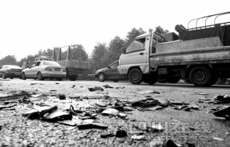 雖然只有了兩條車道能夠通行,但此時(shí)一旁的過路汽車還要注意地面上遍布的各種汽車碎片。