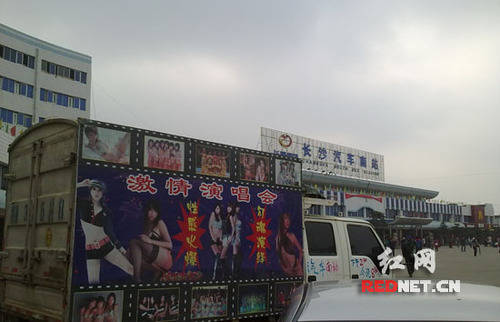 ????紅網(wǎng)長沙12月27日訊(記者 李衛(wèi)林)“激情無限,魅力四射”“實力+風(fēng)騷+搞笑”“100%好看”……在客流量巨大的長沙汽車南站前坪,經(jīng)常停著一臺印有香艷宣傳畫、帶有高音喇叭的流動宣傳車,刺激四方乘客眼球。昨日,來自湘潭的王先生把這一畫面用手機(jī)拍了下來,曬在紅網(wǎng)《百姓呼聲》欄目。