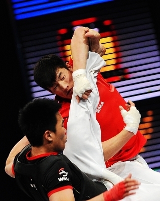 ??? 在冠軍爭(zhēng)奪賽中,青島隊(duì)首先上場(chǎng)的徐安慶第三回合以擊倒對(duì)手獲勝;第二個(gè)上場(chǎng)的卞保保順利戰(zhàn)勝對(duì)手;袁彪第三位出場(chǎng)采取了保守戰(zhàn)略,第一回合一度落后,但最終憑借實(shí)力戰(zhàn)勝對(duì)手。