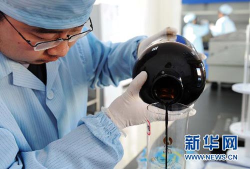 1月1日,在漠河輸油站,黑龍江省出入境檢驗檢疫局漠河辦事處工作人員在進(jìn)行油樣測定。新華社記者王建威攝