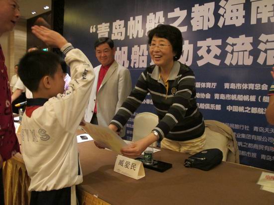 臧愛民向三亞市民代表贈(zèng)送帆船體驗(yàn)券